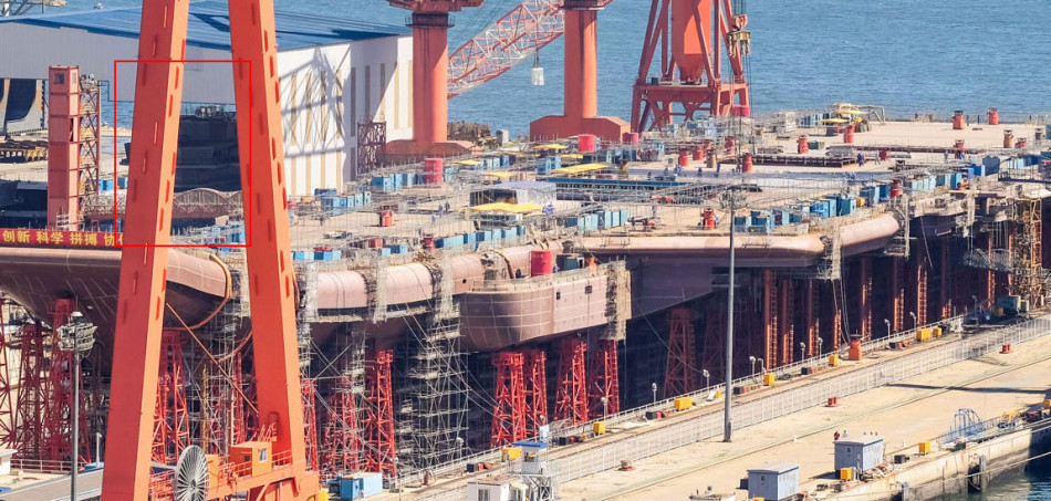 日前,一张国产航母的“卫星谍照”在网络上流传。同时有消息称,中国第一艘国产航母在大连造船厂完成了舰艏的安装,主舰体部分已接近完工。这是国产航母自2015年首次曝光以来,时隔一年后的又一重磅消息。