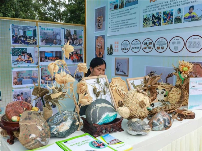 新民学校展示区前人头攒动,一件件精美的草编作品吸引着参观者驻足观赏。这些由师生共创的作品,将传统技艺与现代审美巧妙结合。学校的《悦编·草韵新生》特色课程将非物质文化遗产草编技艺创造性转化为劳动教育课程资源,通过"分段实践+以学促编"的教学模式,让学生在动手实践中感悟工匠精神,在创意设计中培养审美情趣,实现了劳动技能培养与文化传承的深度融合。